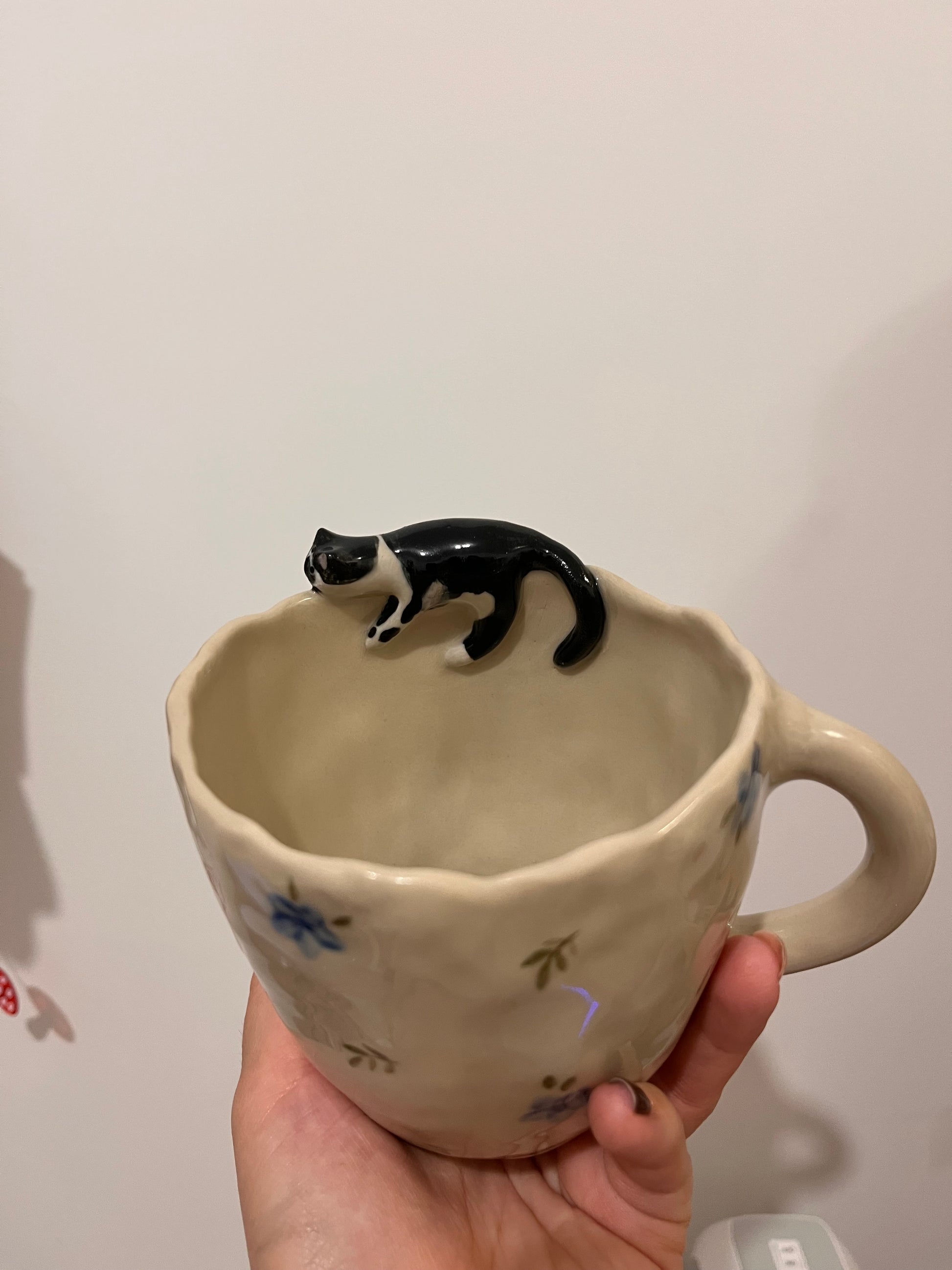 Mug tout fleuri avec son petit chat qui se repose 🤫