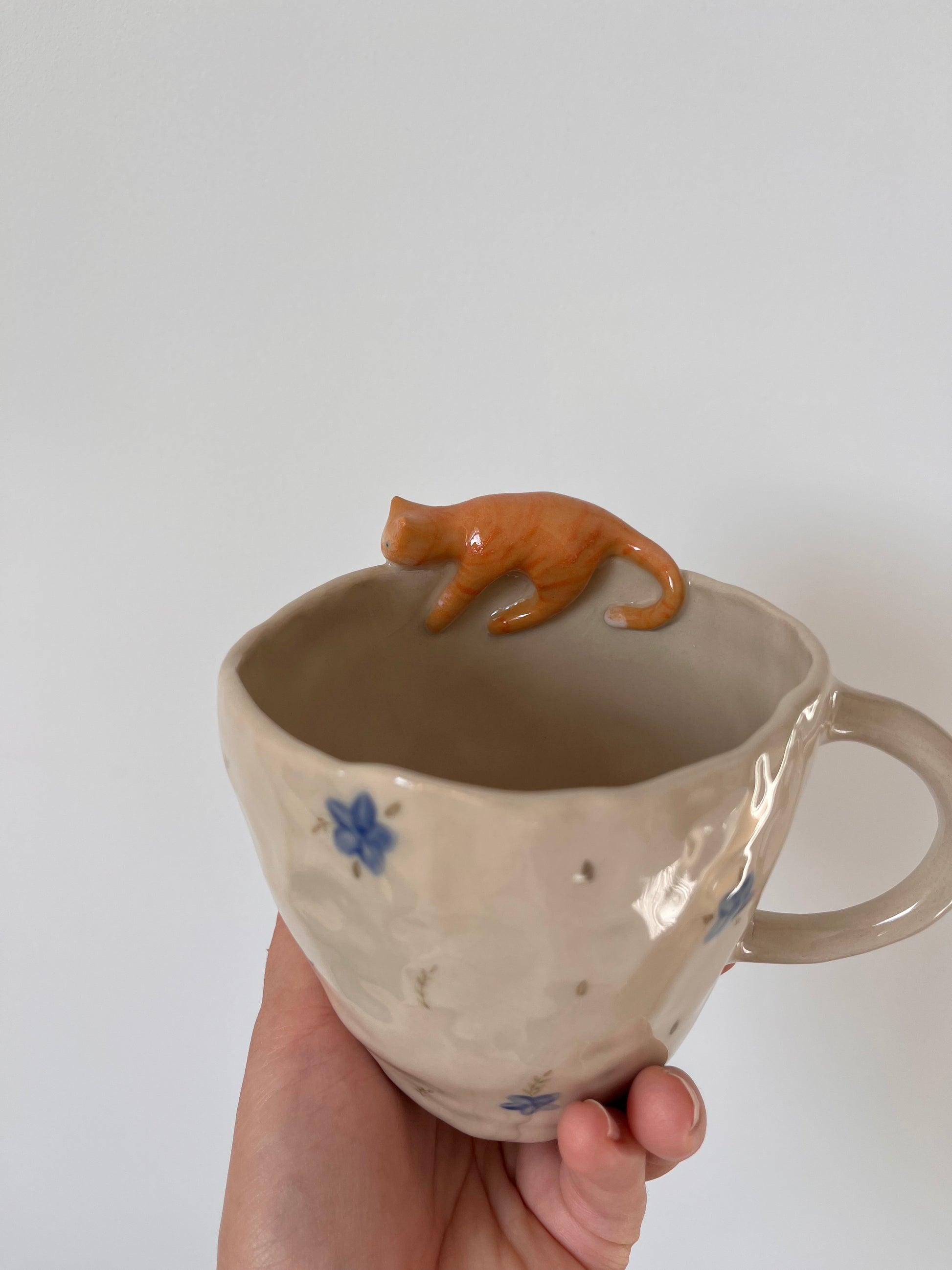 Mug tout fleuri avec son petit chat qui se repose đ€«